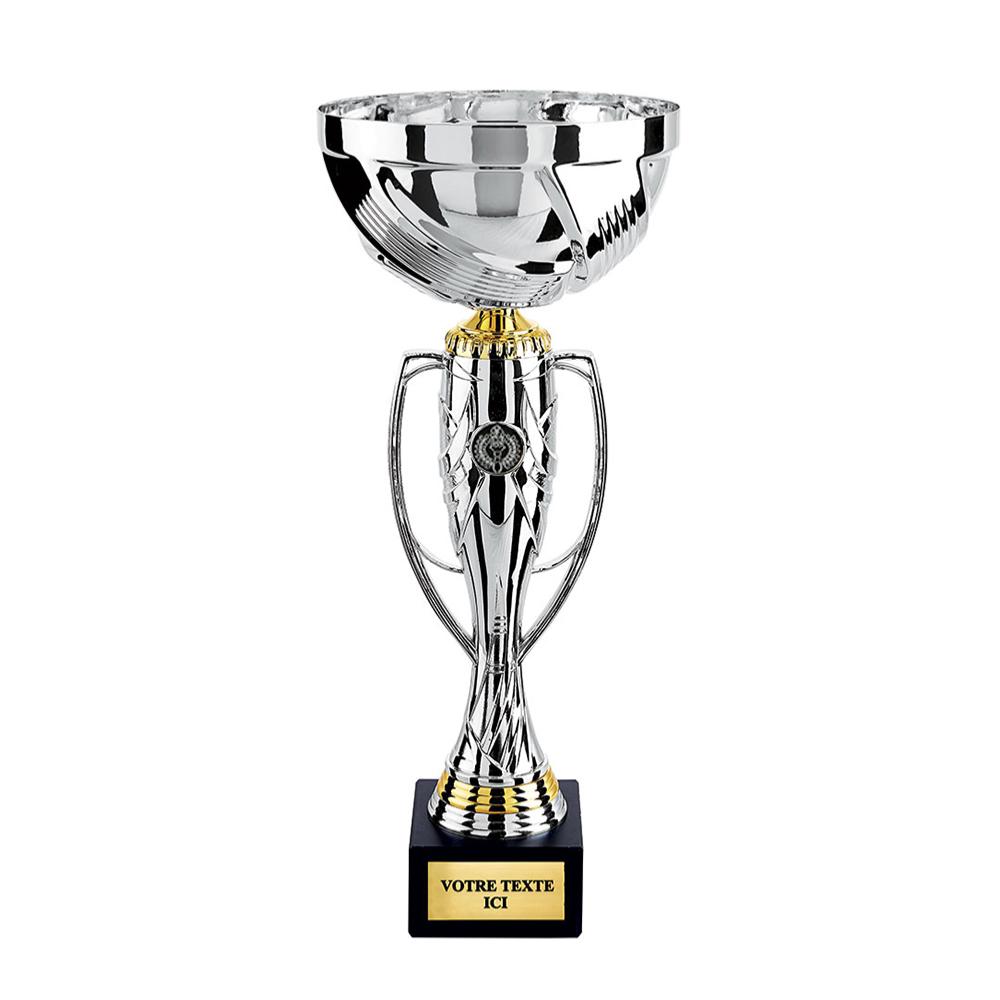 - Vous pouvez personnaliser ce trophée avec une plaque Gravoply rigide de 70x30mm, couleur or, le texte en noir.